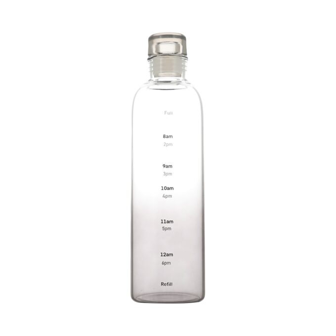 Stiklinė gertuvė, sužymėta valandomis (500mL)(pilka